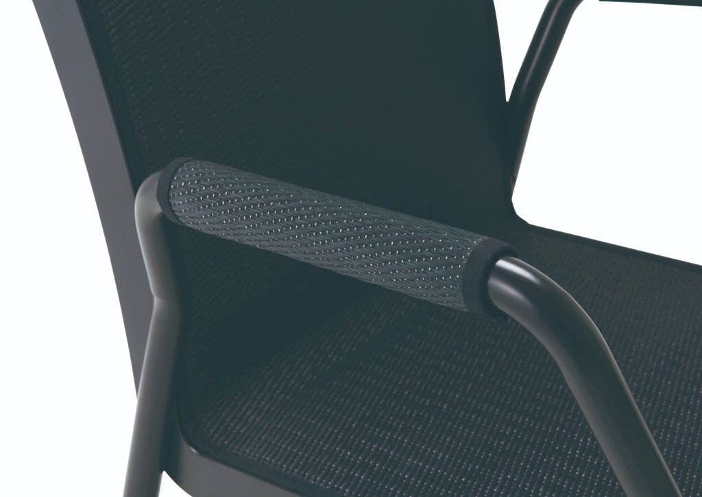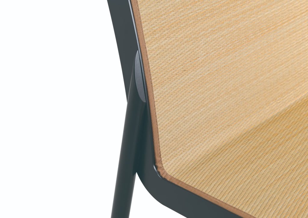 フレームにはミニマルなスチール構造を採用し、アームレストの有無が選択可能です。ブラック・グレー・ブラウンの3色展開による細身のレッグに、光沢感と快適性に優れた6種類のい草座面仕上げを自由に組み合わせることができます。