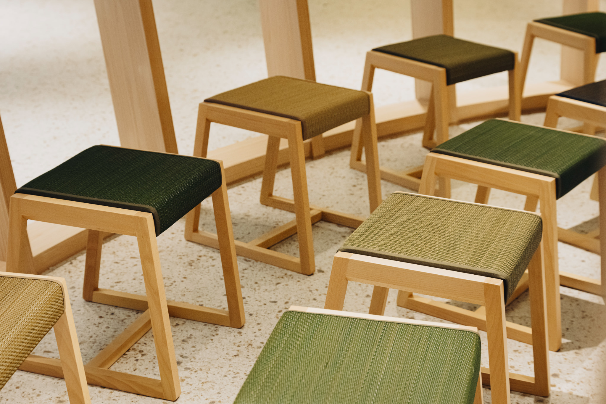 国産い草をふんだんに使用した家具を置くことで五感からも日本らしさを感じていただける、 特別なひと時を演出します。