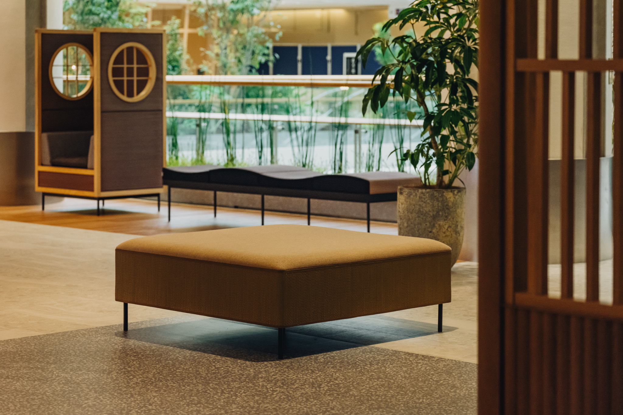リラックスエリアの「書の間」にアダルの家具が採用されました。